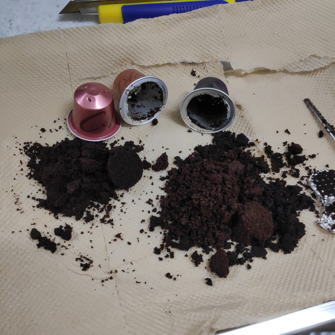 이때 힘조절을 잘못하면 커피박이 사방에 튀는 참사가 발생하니 살살 뜯어주세요