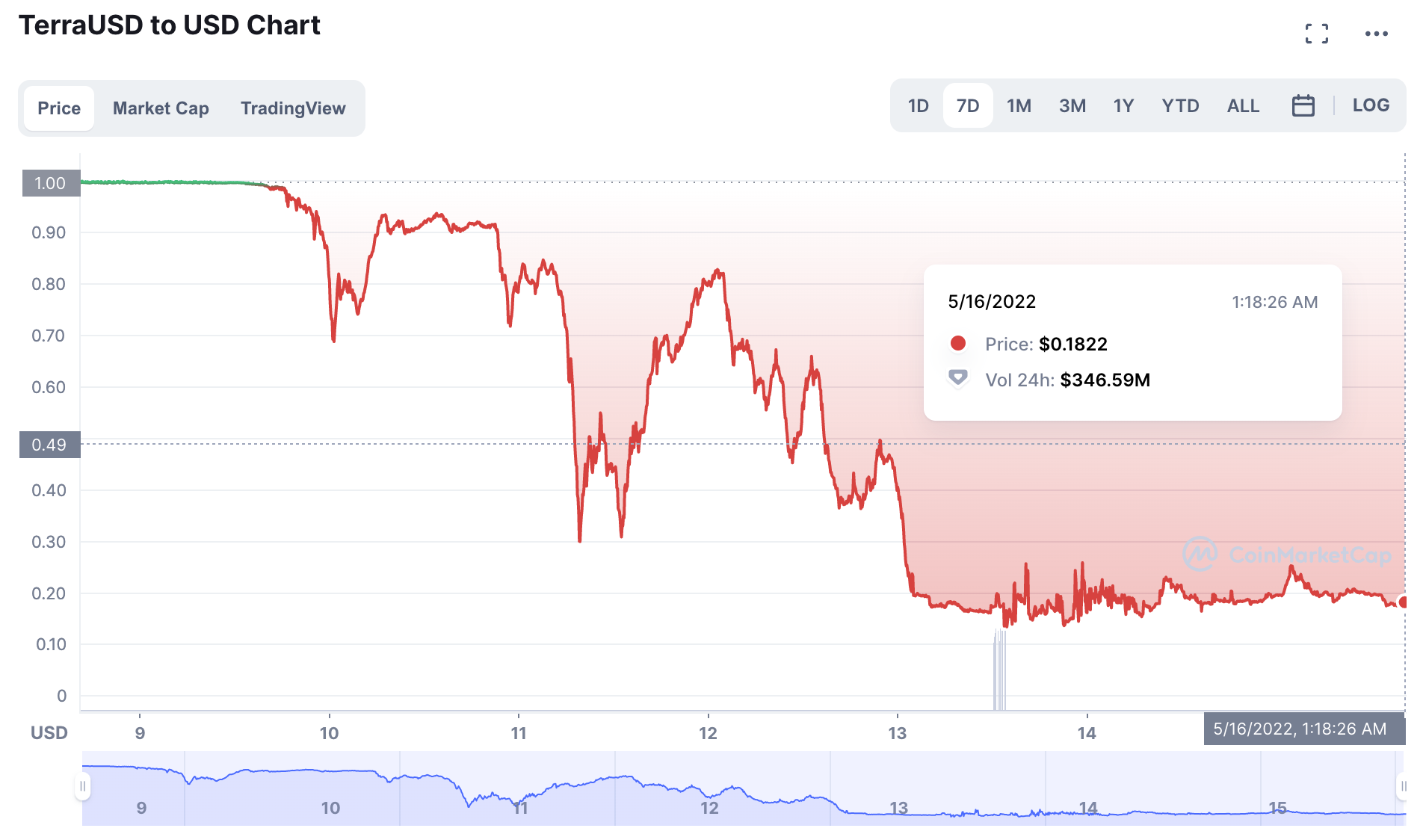 최근 알고리즘 기반 스테이블 코인이었던 테라(UST, Terra)가 루나코인 폭락의 영향으로 1달러 페깅이 깨지고 수직 하락하고 있는데, USDT와 USDC는 법정화폐 담보이기 때문에 테라같은 급락은 없을 것이라 봐도 좋습니다.