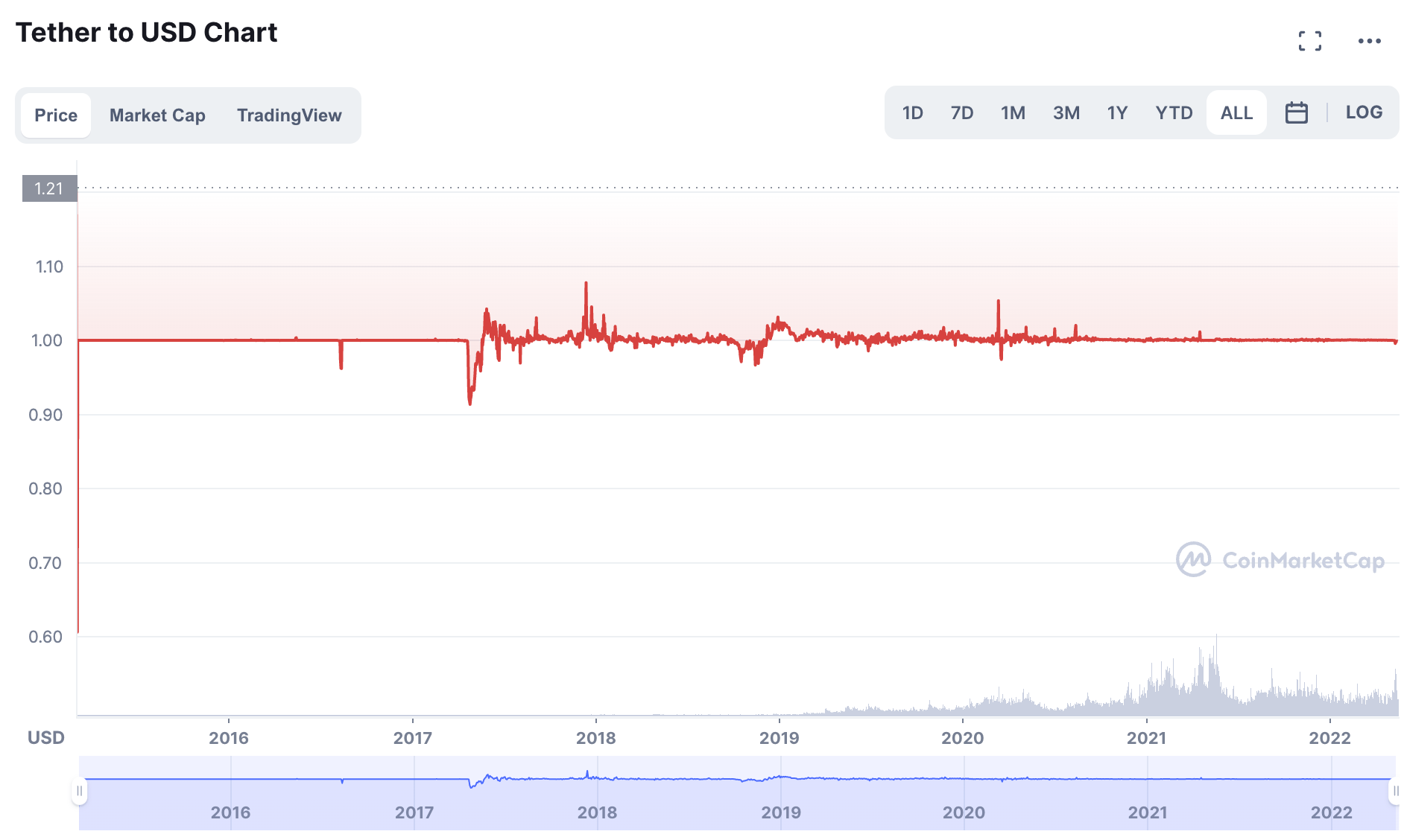 일반적으로 $1의 안정된 가치를 유지하고 있지만, 2017년 0.9달러대까지 디페깅(depeg)된 적이 있습니다.