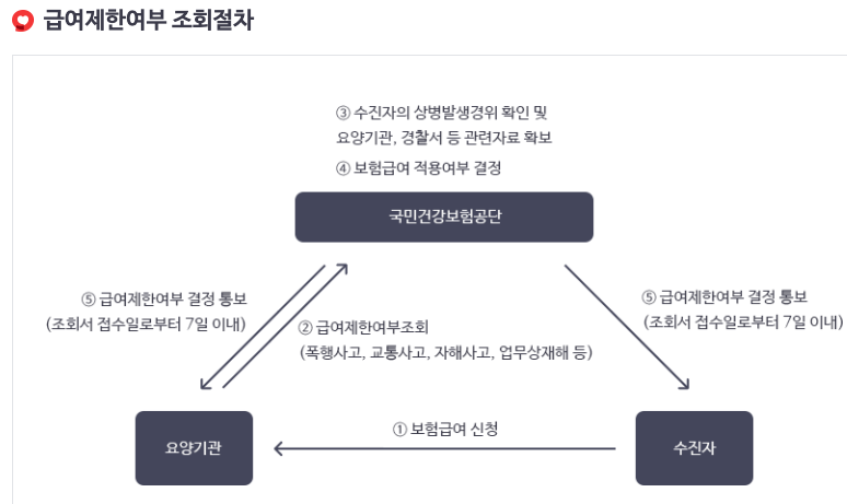 절차는 위와 같습니다. 급여제한여부 조회서 작성해서 원무과에 제출하면 처리해줍니다.