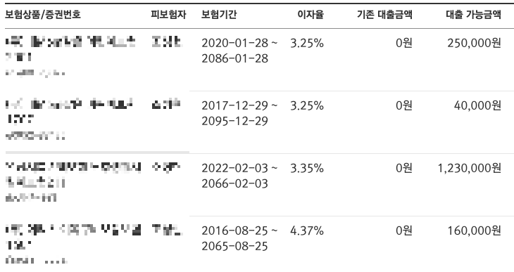 확인해보면 보험상품별로 대출 가능금액과 이자율이 다르니 이 점 유의하셔야 합니다.