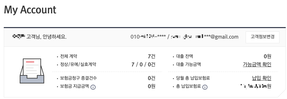 예를 들어 메리츠화재는 홈페이지에서 계약 정보와 보험계약대출 가능 금액을 확인할 수 있습니다.