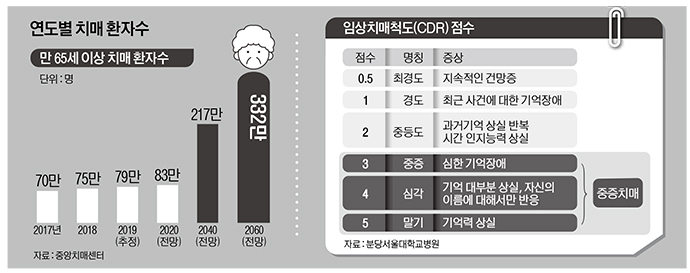 치매환자 1명당 필요한 의료비와 간병비는 연 2000만원 이상으로 추산되어 소득 없는 노인이 감당하기에는 역부족인 상태입니다.